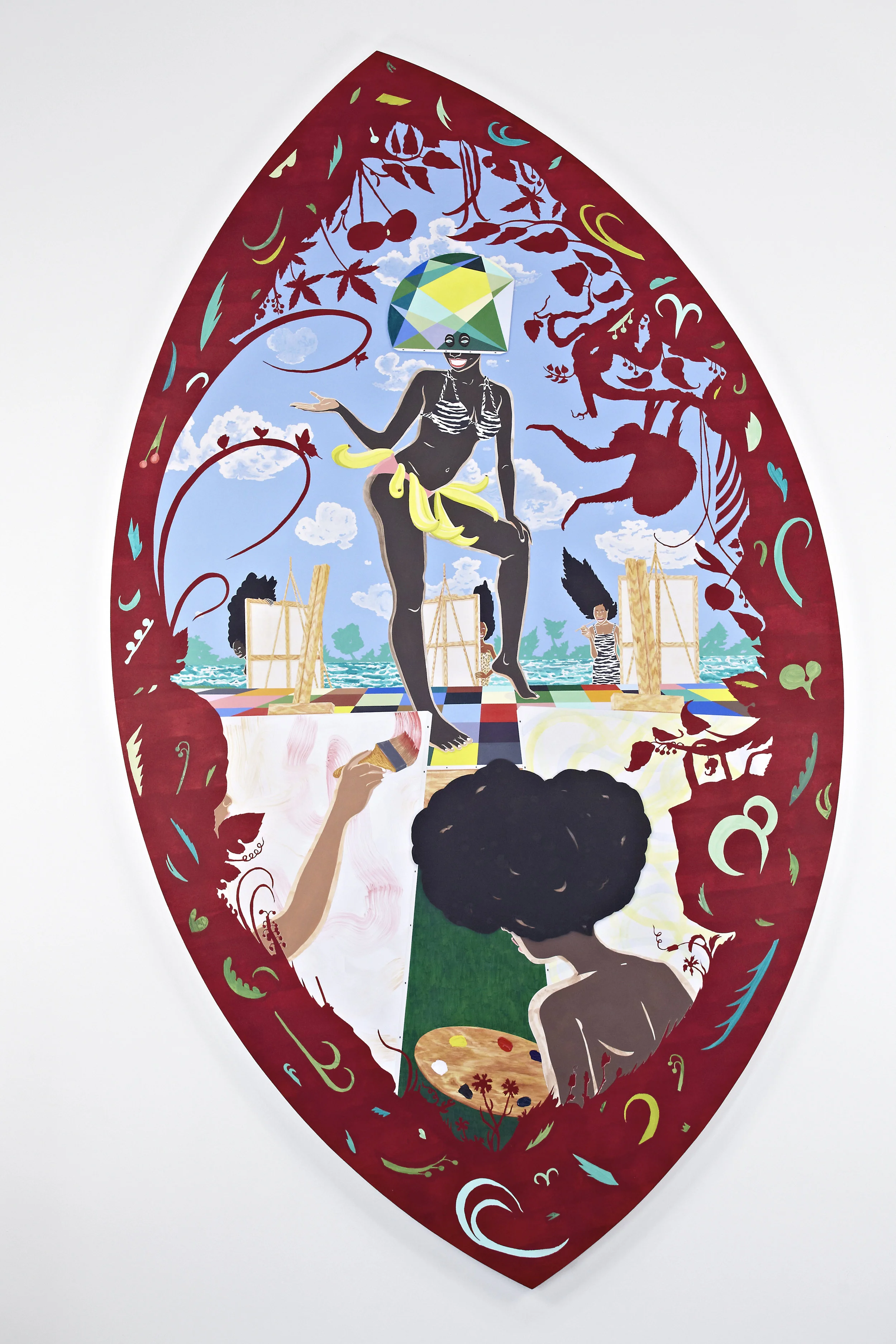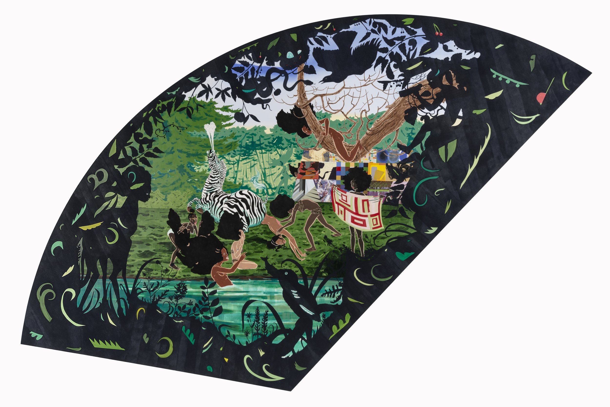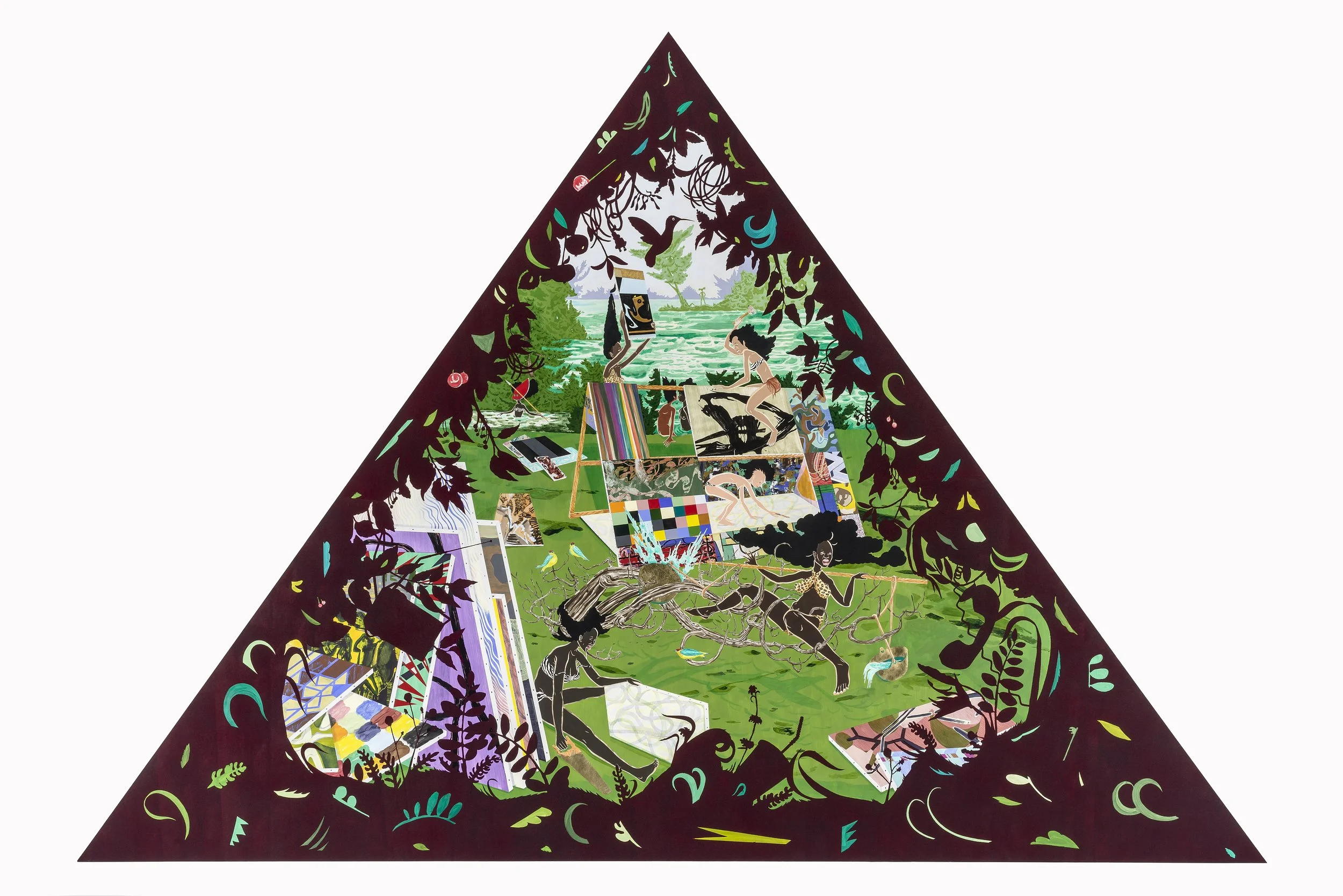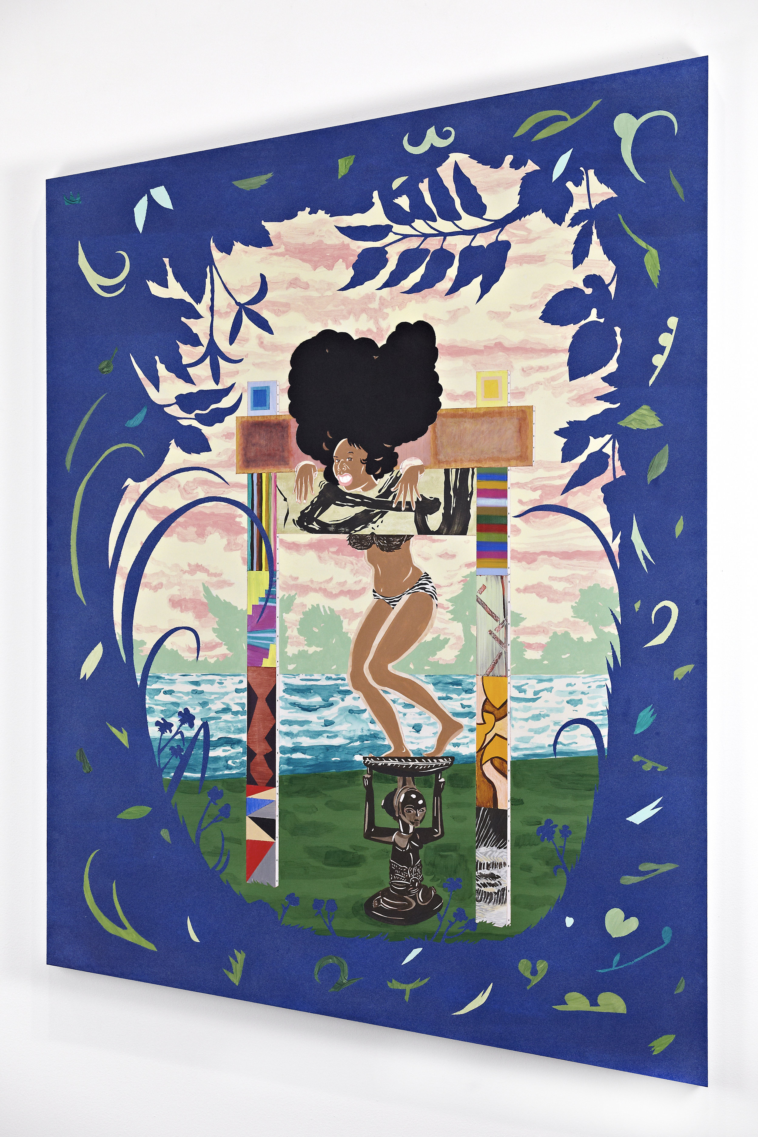acrylic, velvet flocking and paper/wood panel