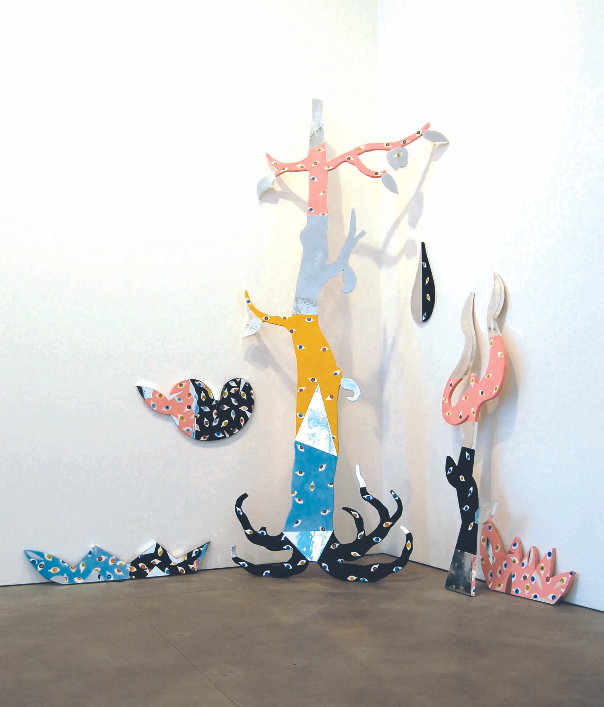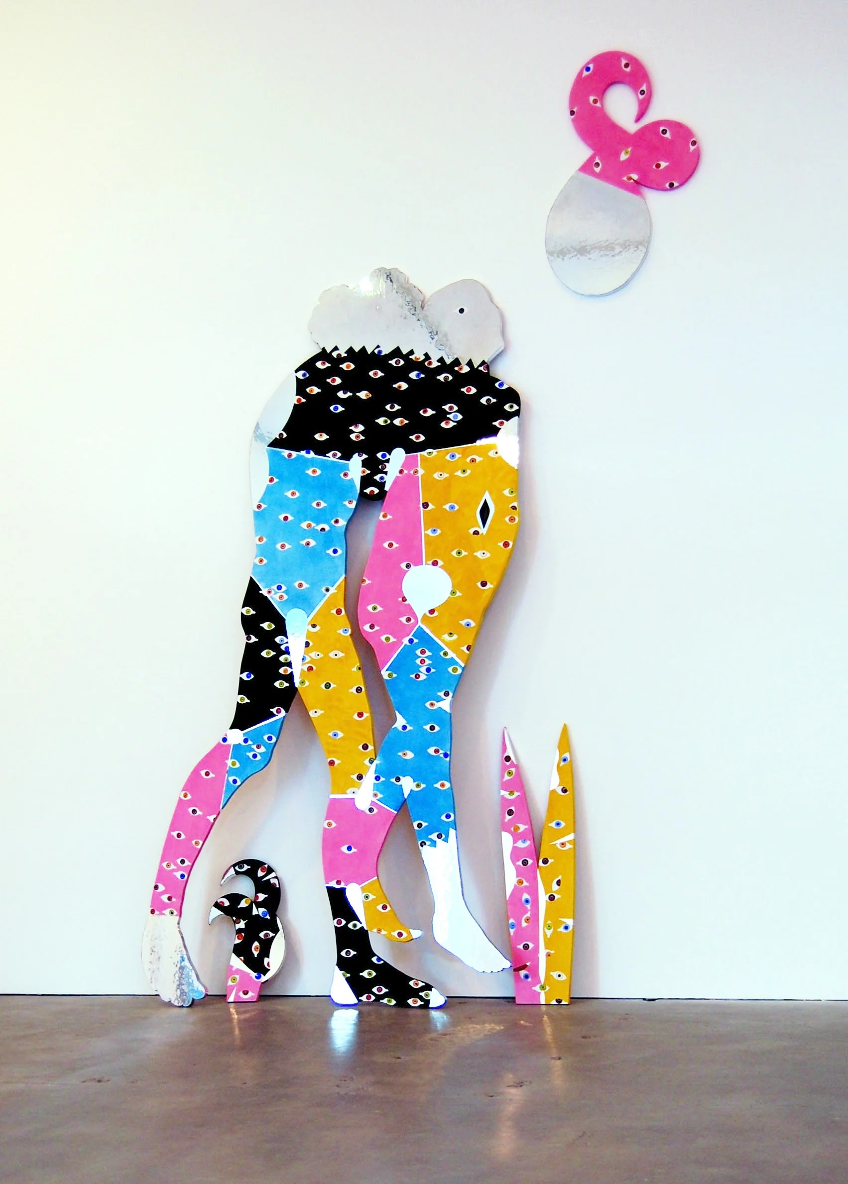 velour paper flocking, mirrored mylar, and acrylic paint/wood panel